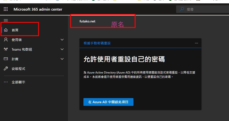 - 請先以管理者的身份登入 https://admin.microsoft.com/