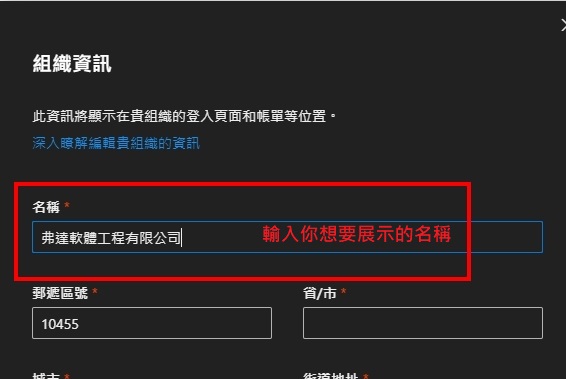 - 輸入想要修改的顯示名稱 (例: 弗達軟體工程有限公司)