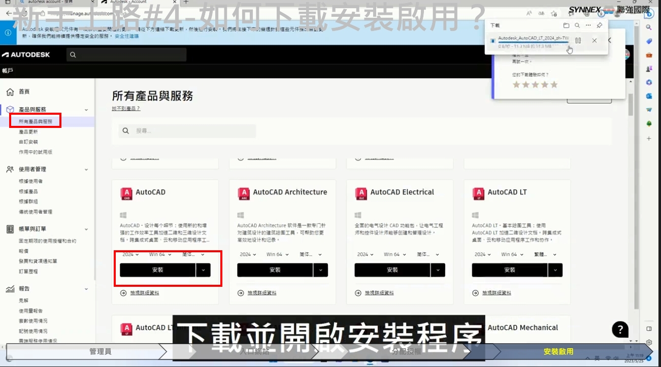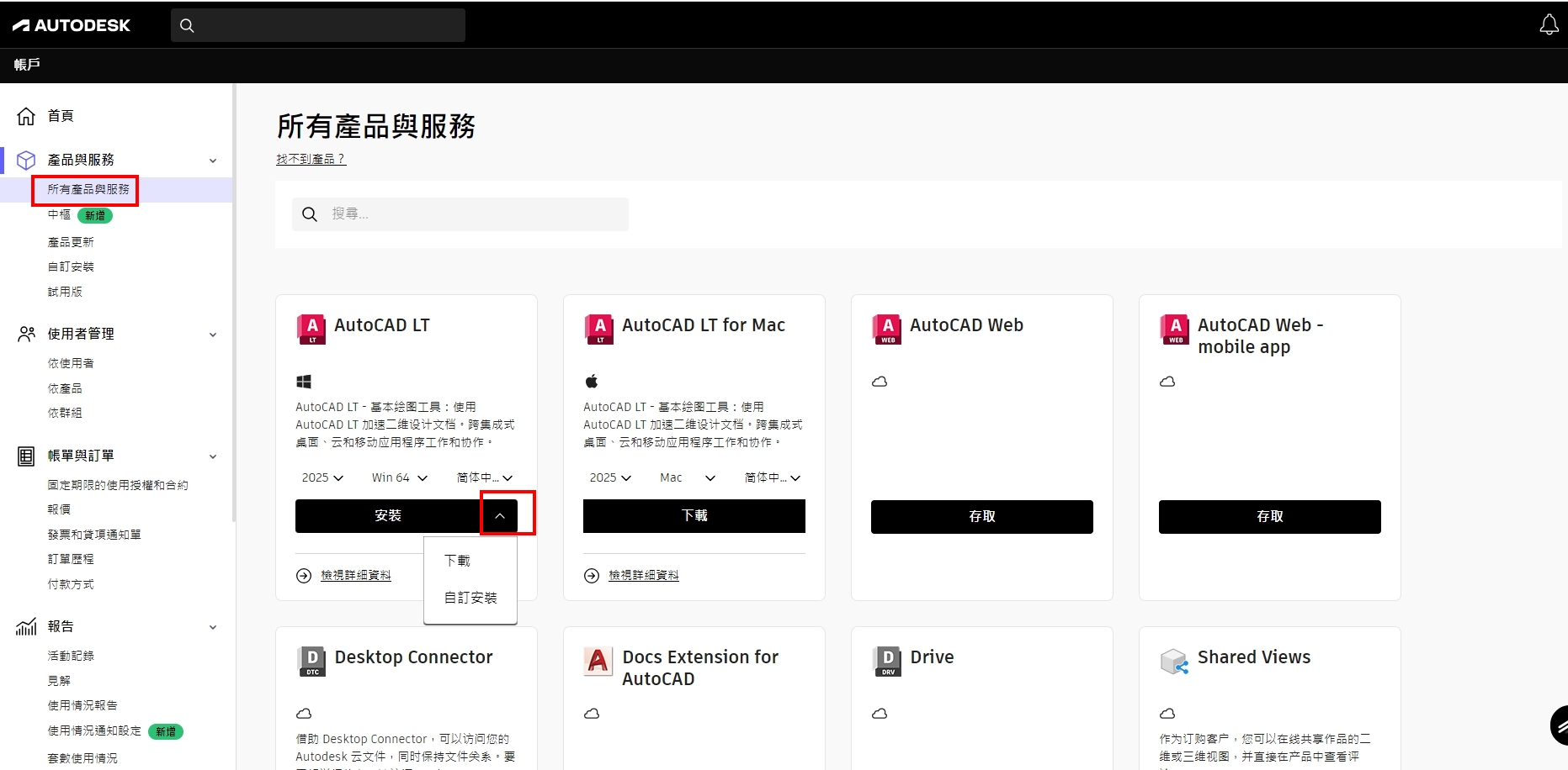 在『所有產品與服務』選擇您所需要下載的軟體 如AUTOCAD