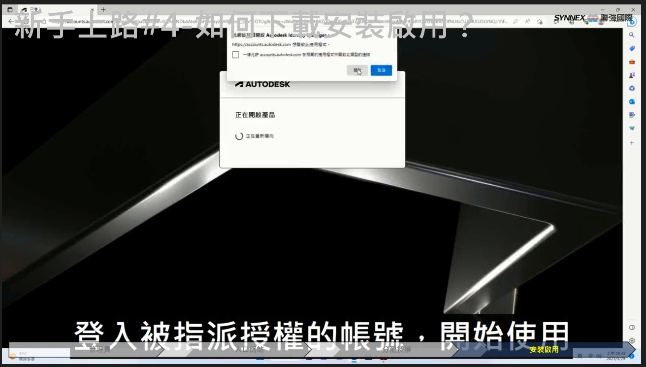 軟體安裝完成後,登入使用者的歐特克帳號(EMAIL) 及密碼,就可以開始啟用。