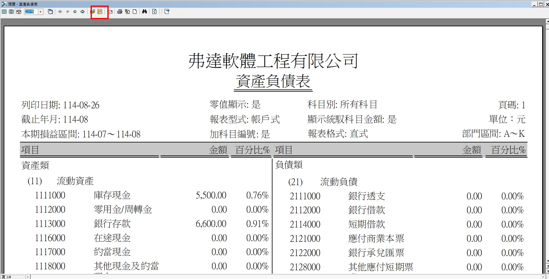 出現預覽報表後, 找一下 上方的磁碟片圖示
