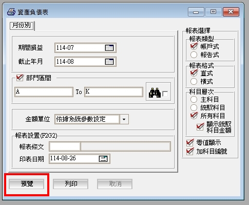 勾選所需報表方式及 選擇需要的區間後, 按「預覽」功能