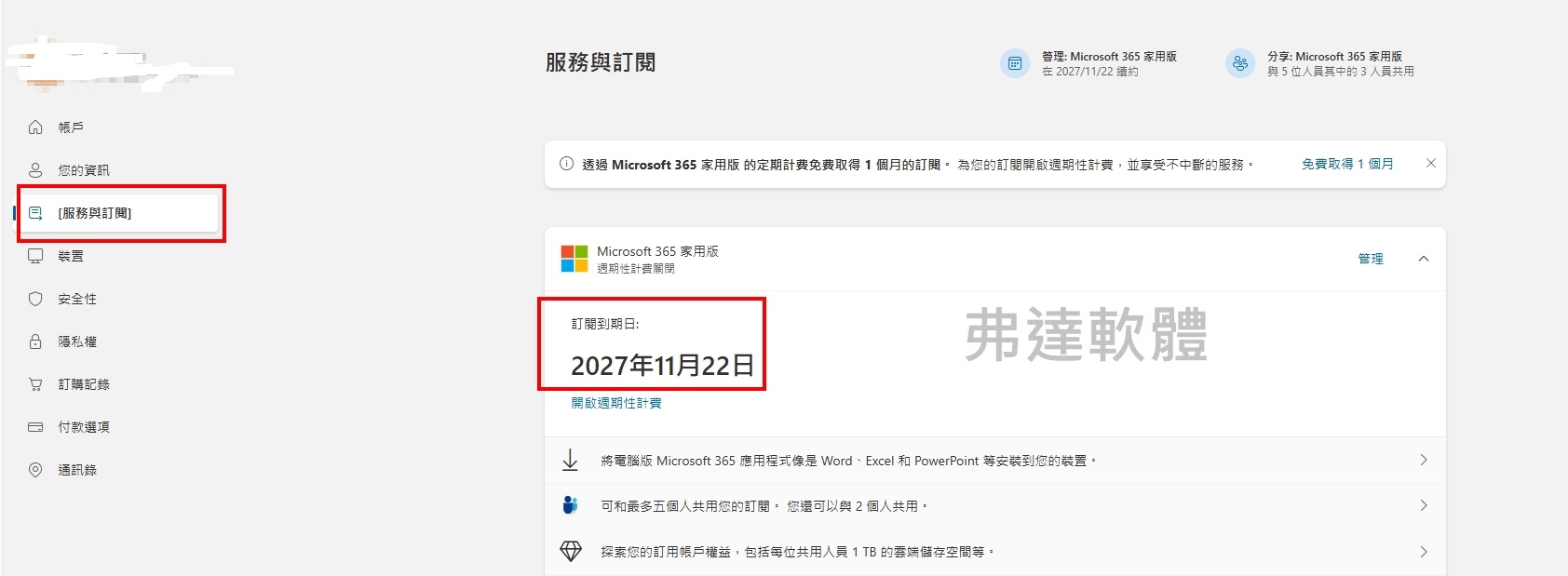 - Microsoft 365 家用版/個人版目前尚未過期帳戶
