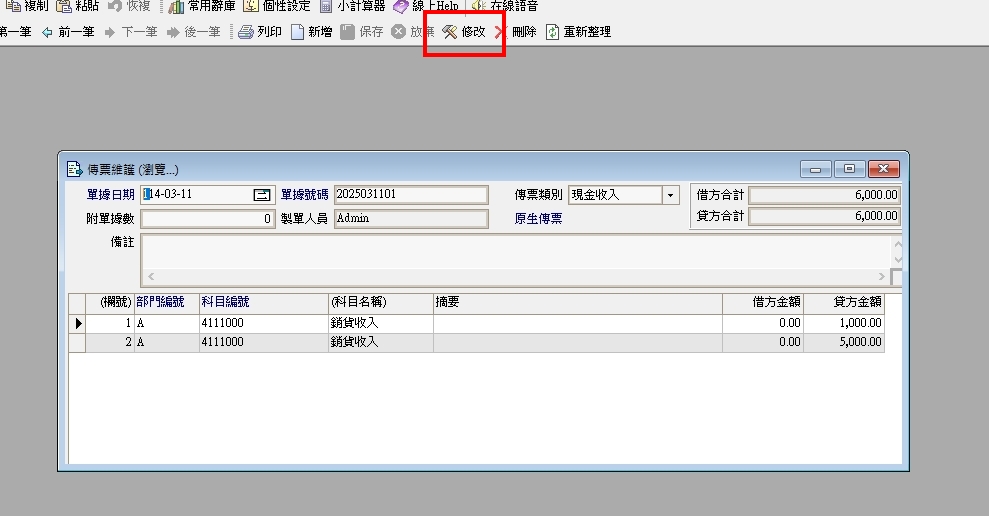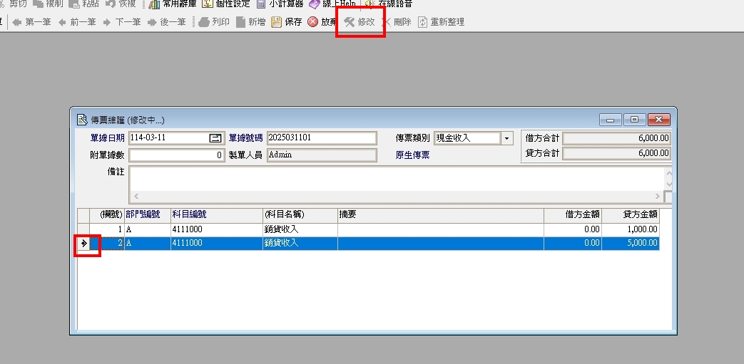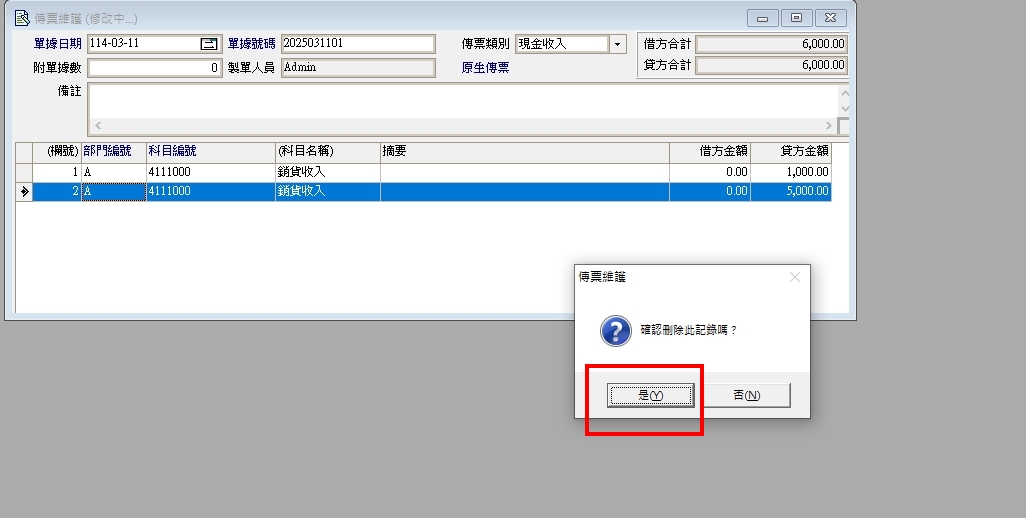 正航一號傳票-刪除傳票裡的部份筆數