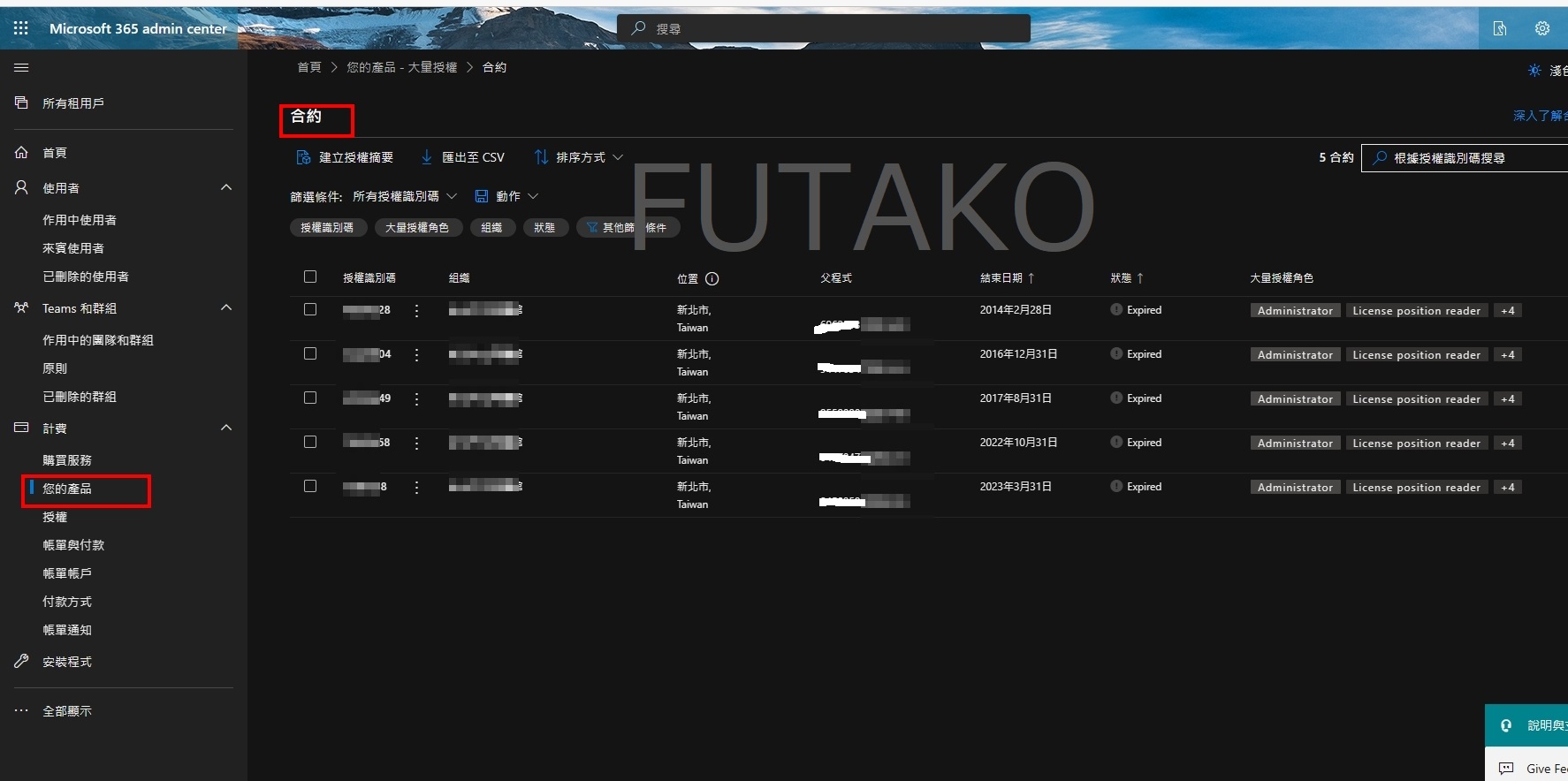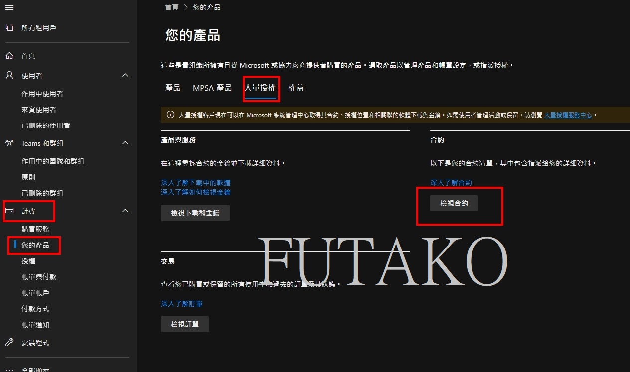 選取 [檢視合約],可以看到已訂購的授權合約內容