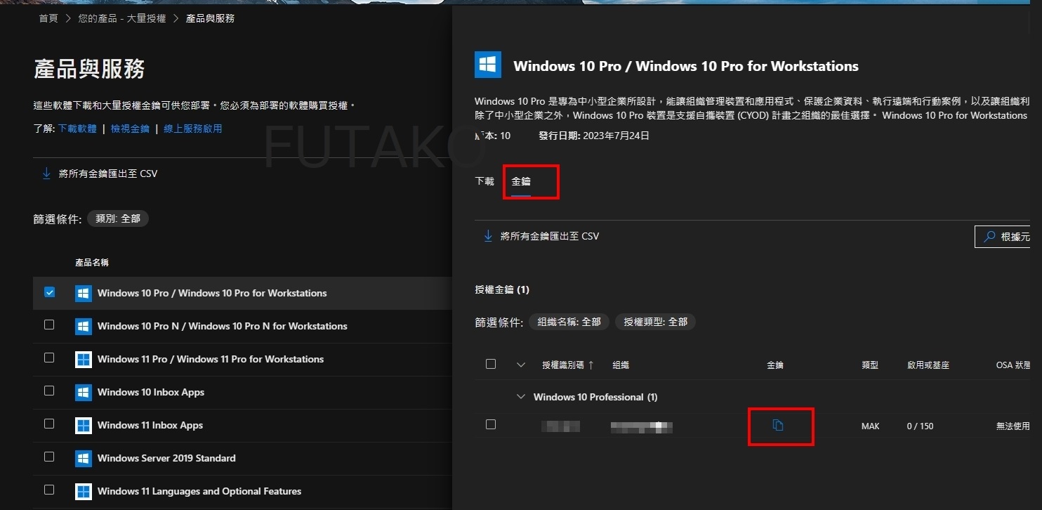 4. 若要下載金鑰,請選取 [ 複製金鑰至剪貼 簿]。