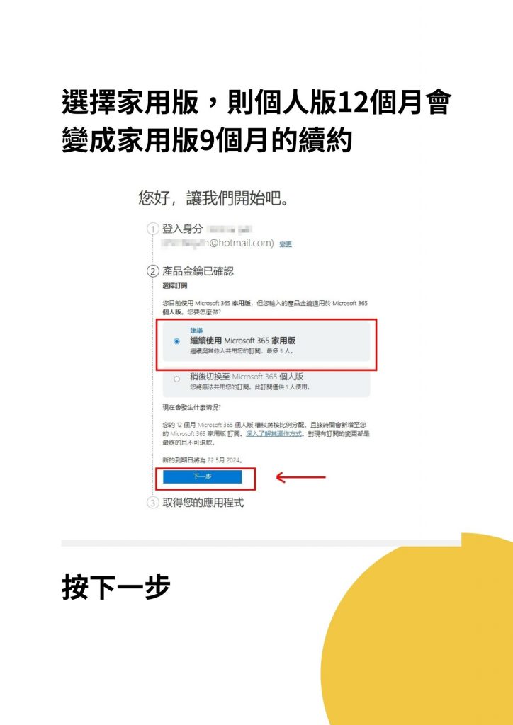以下提供如何用個人版金鑰續約家用版的說明