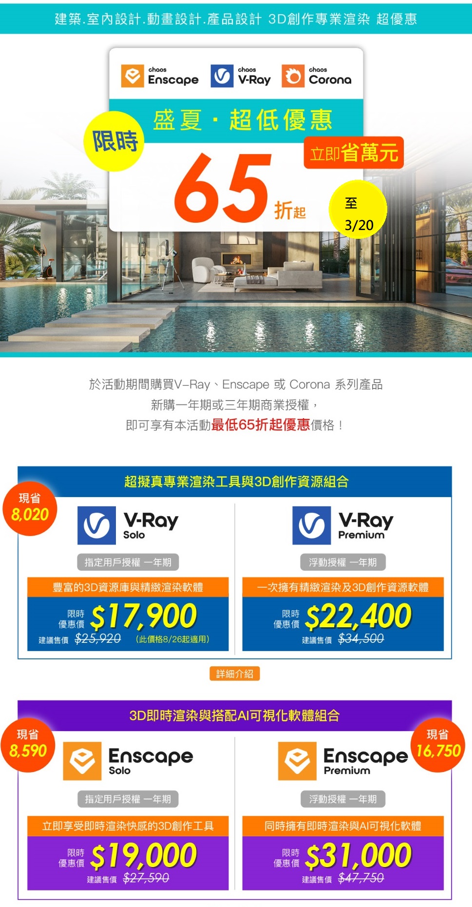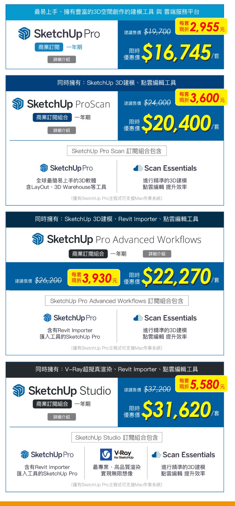 │SketchUp│V-Ray│Enscape│KEYSHOT│Twinmotion│微軟授權│華康文鼎字型│Coreldraw│FOXIT PDF│ZWCAD│
