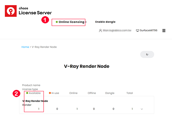 本圖片說明的範例是V-Ray Render Node的產品授權項目